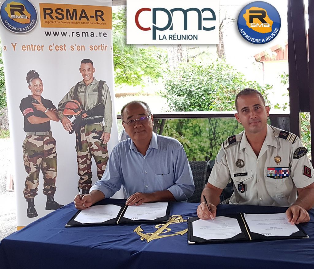 C’est l’objet de la convention signée le lundi 20 janvier 2020 entre le lieutenant-colonel Julien Maurel, chef de corps du RSMA-R et Monsieur Eric Leung, Président de la CPME Réunion : créer les conditions nécessaires pour faciliter à la fois l’intégration des volontaires du RSMA-R au sein des entreprises et encourager ces dernières à recruter les jeunes formés au régiment au sein de leurs équipes.