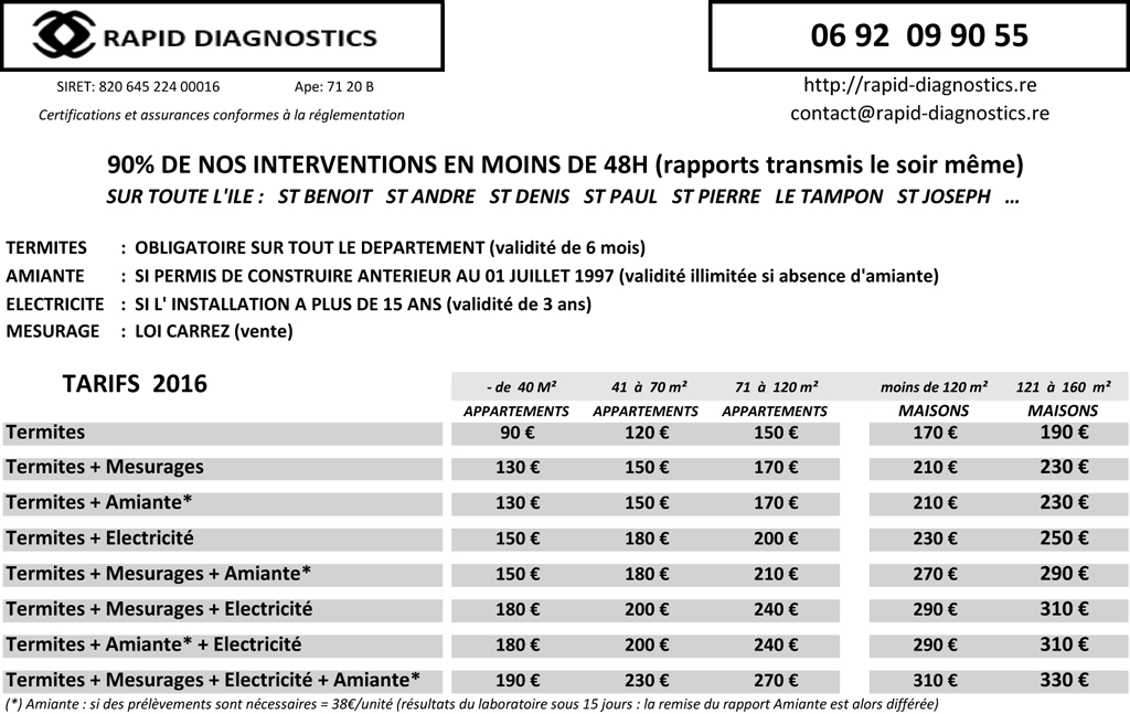- TERMITES : OBLIGATOIRE SUR TOUT LE DÉPARTEMENT (validité de 6 mois)