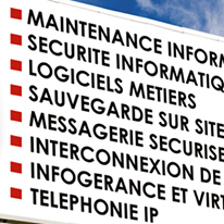 - Infogérance : Maintenance, Maintien en Condition Opérationnelle, Externalisation, Sauvegarde à distance, Assistance.