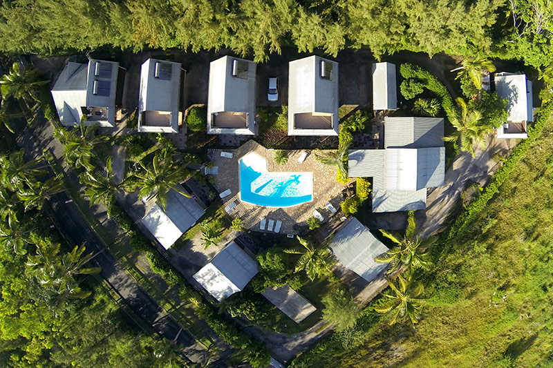 La résidence propose : 1 studio de 30m², 3 appartements de 36m², 4 chalets de 45m² et 4 bungalows en duplex de 60 à 75m². Tous les hébergements disposent de la climatisation, d’une cuisine, de la TV, du Wifi, d’un téléphone, d’une terrasse ou varangue.